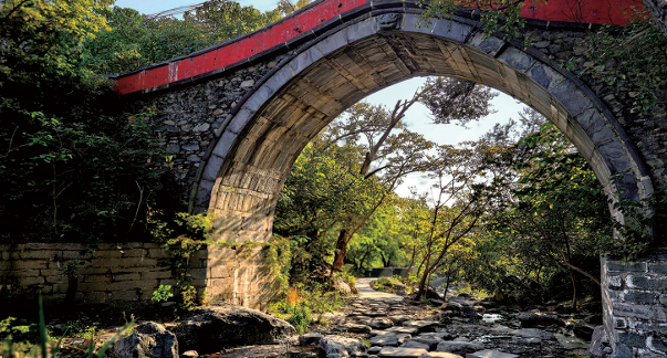 Randonnée aquatique en famille : Se baigner les pieds dans les gués du Réservoir de Lalahu, marcher dans la forêt sur le sentier de planches métalliques à grille, admirer le Pont Wanshan (pont ancien de la dynastie Ming) et pique-niquer près du Temple Shuangquan.